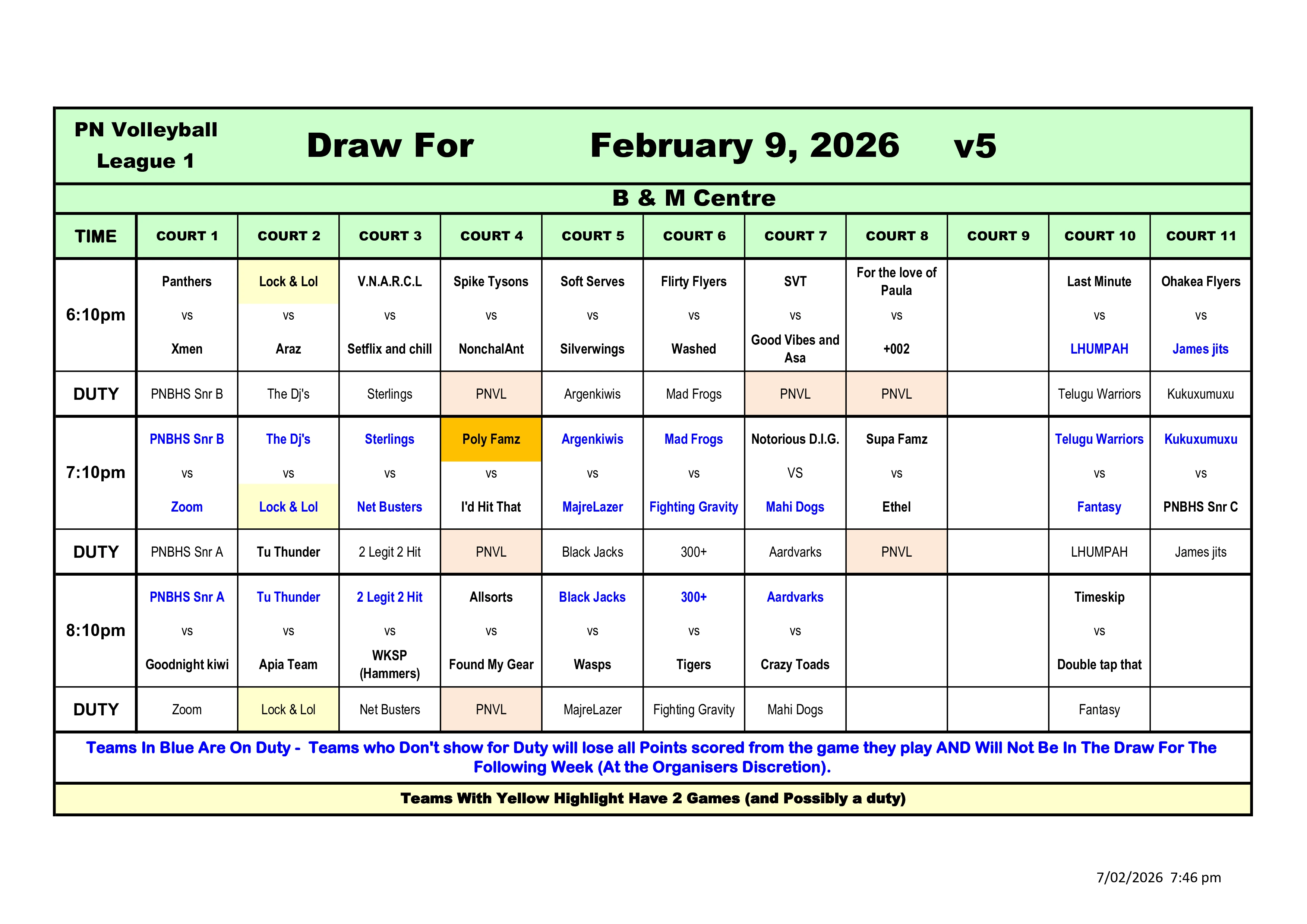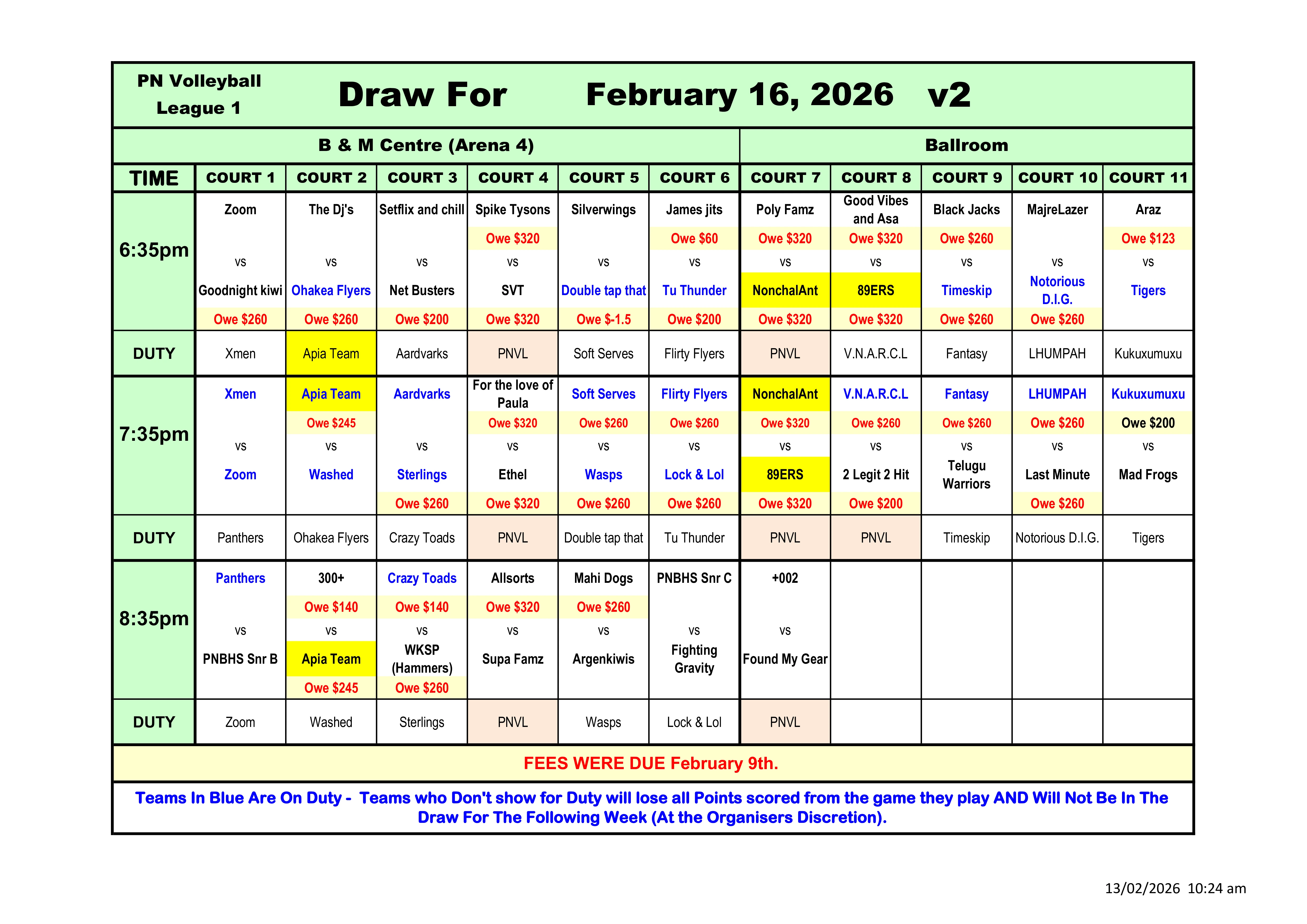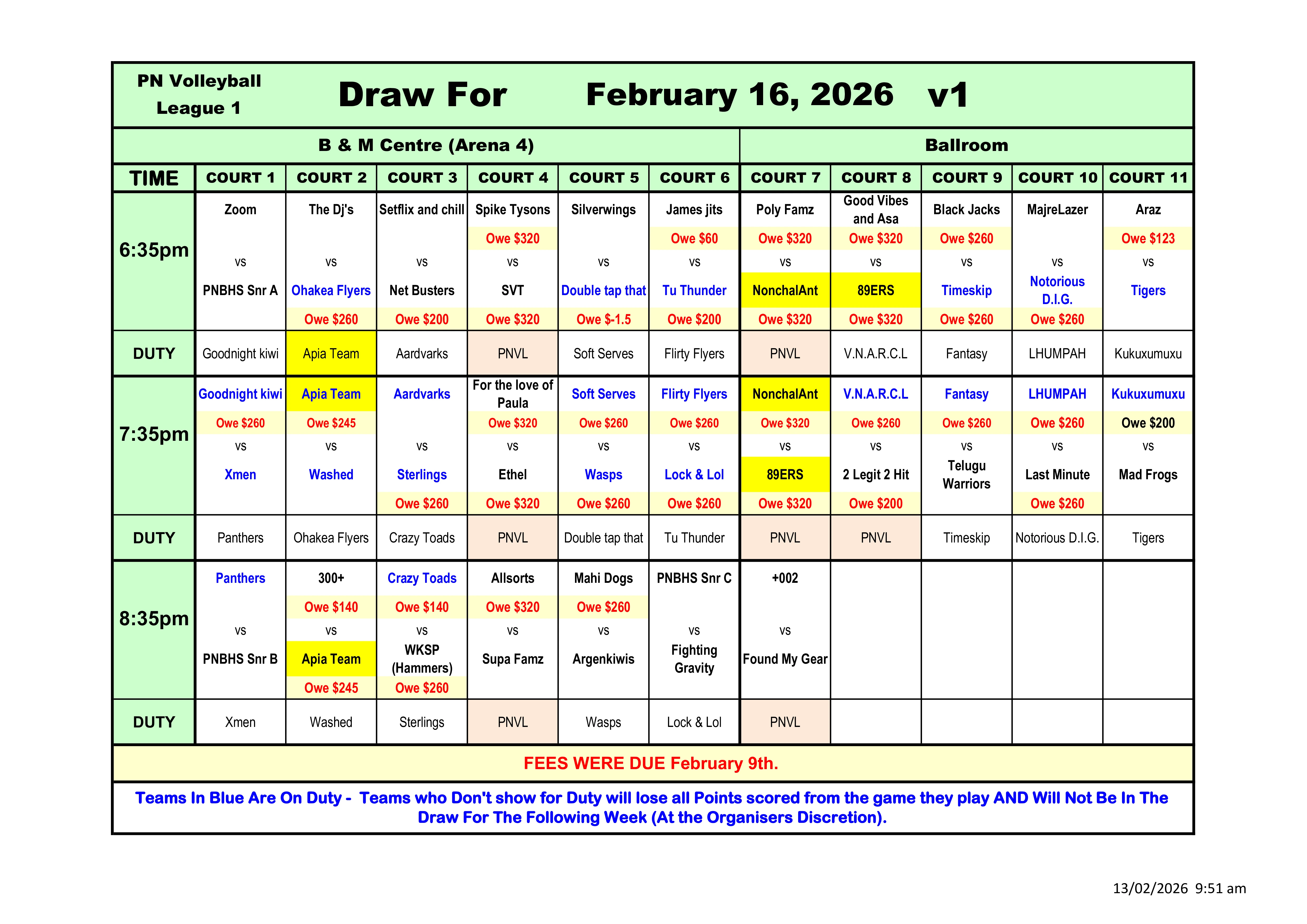 | 7 | Ohakea Flyers | Double tap that | Net Busters | Poly Famz | ||