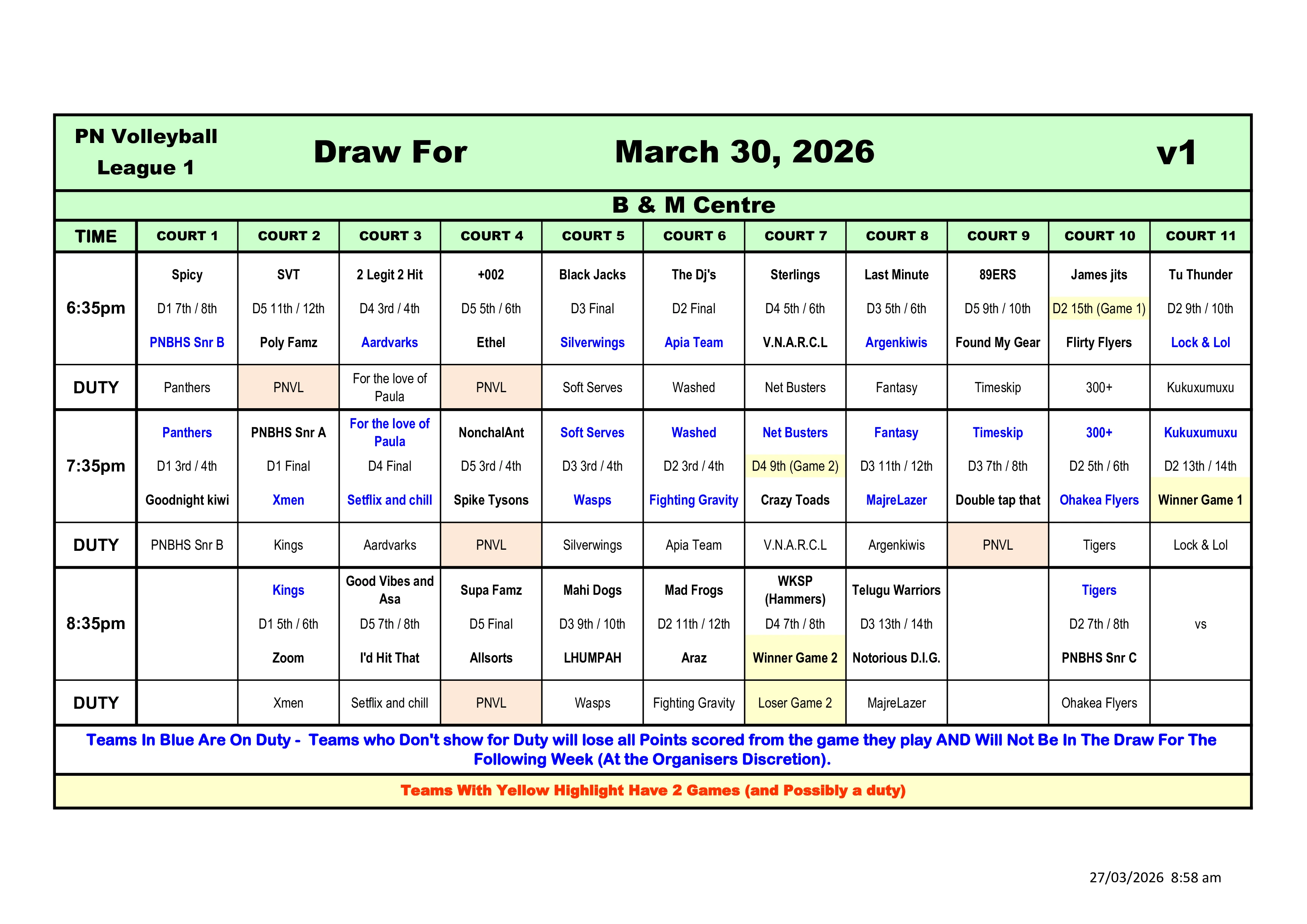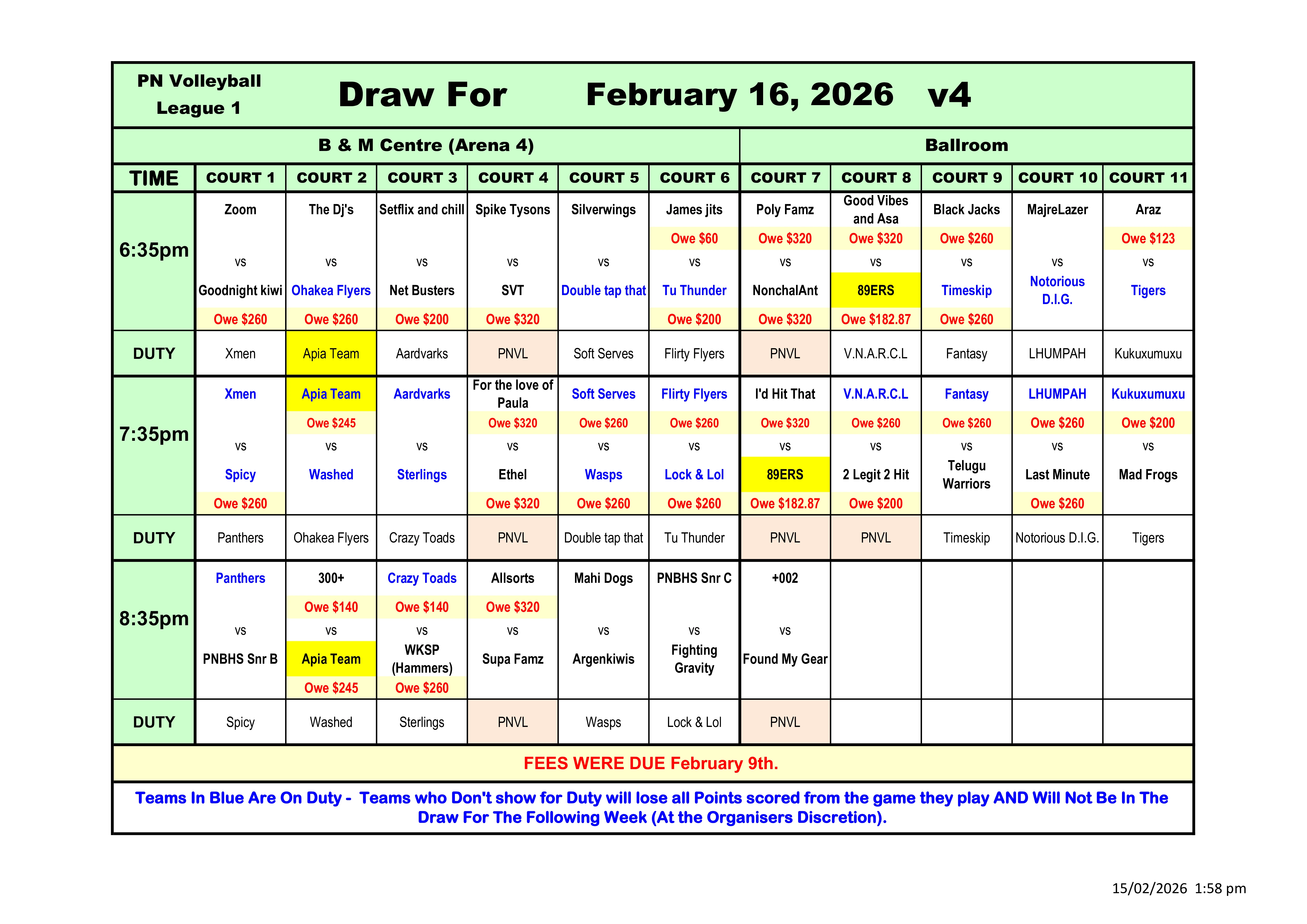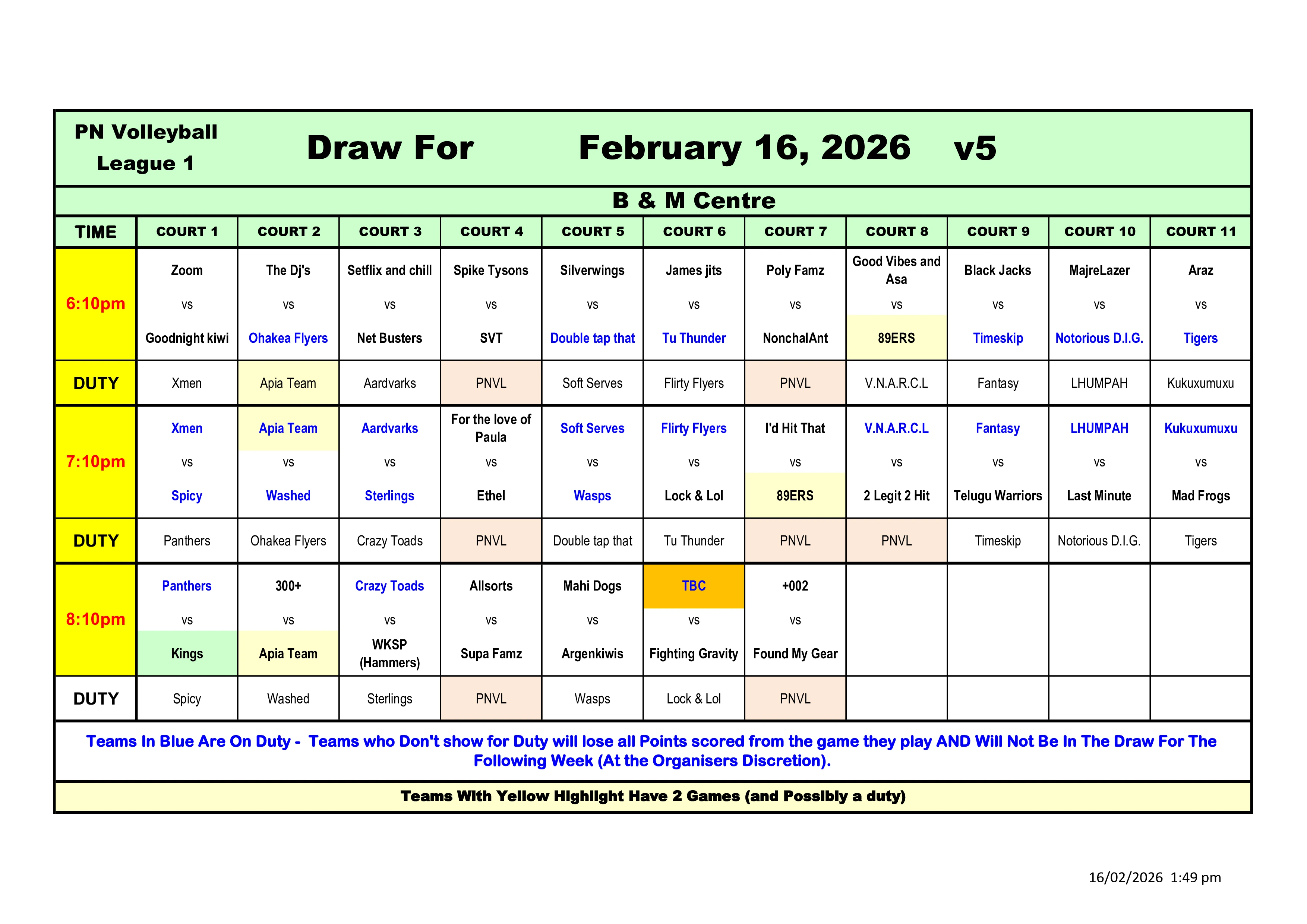 | 7 | Spicy | Ohakea Flyers | Double tap that | Net Busters | Poly Famz | |