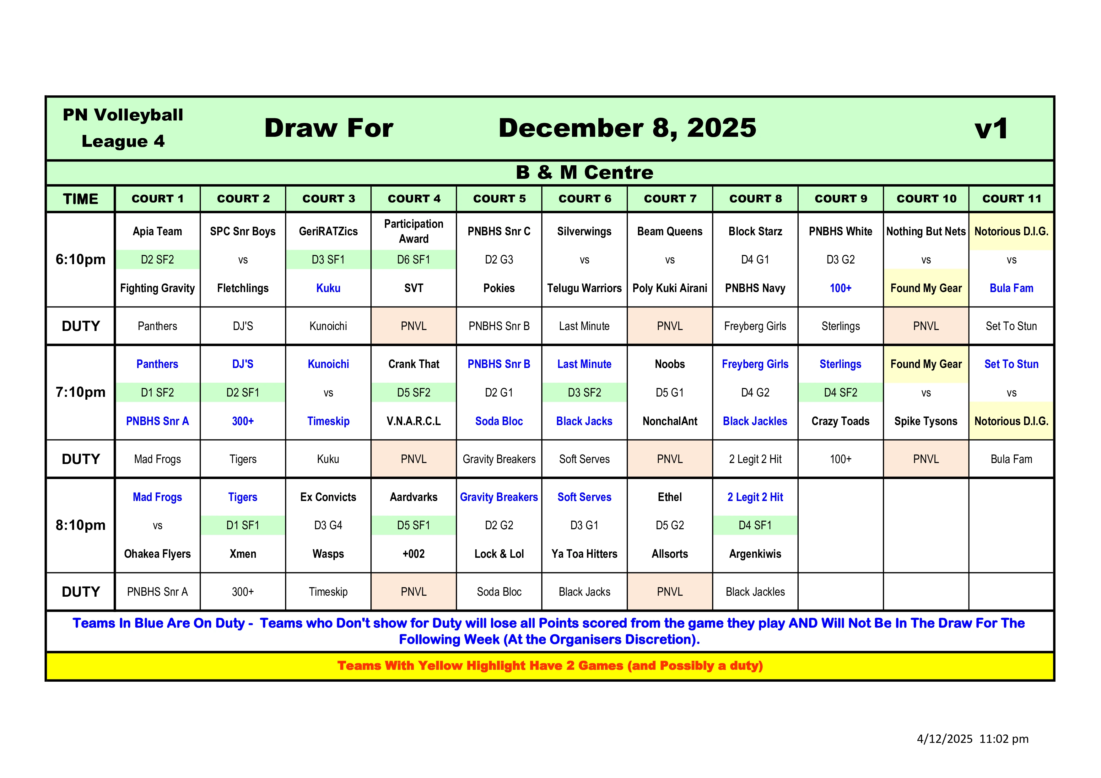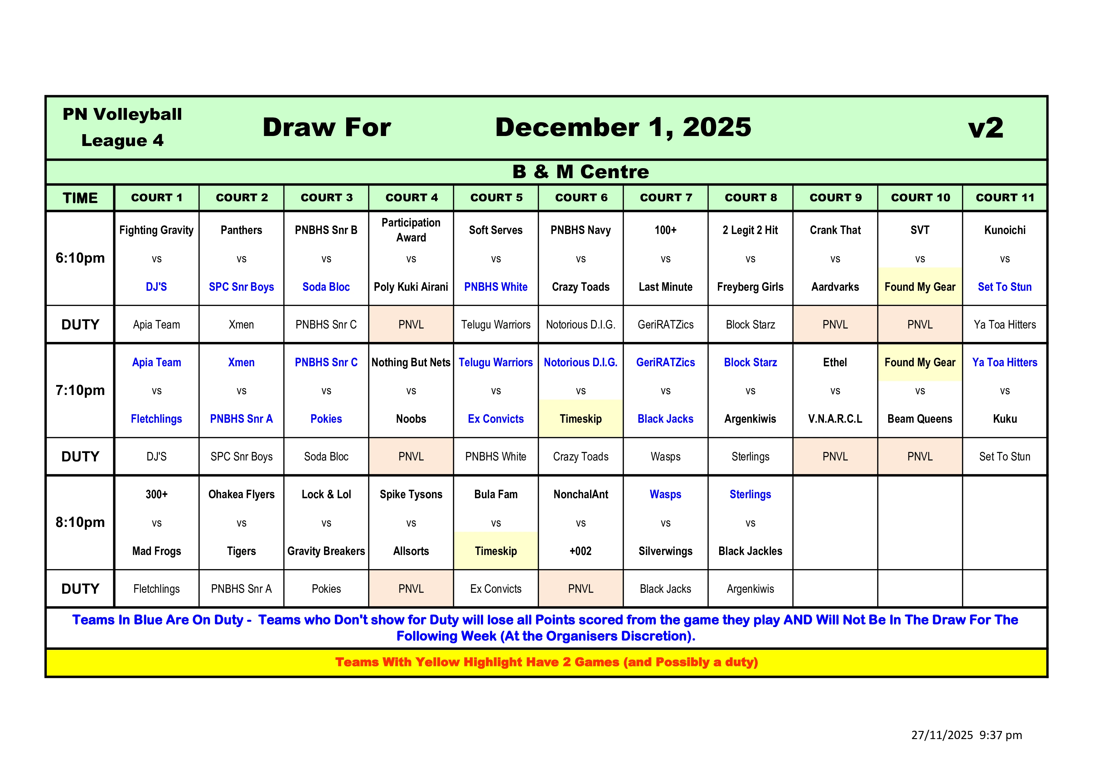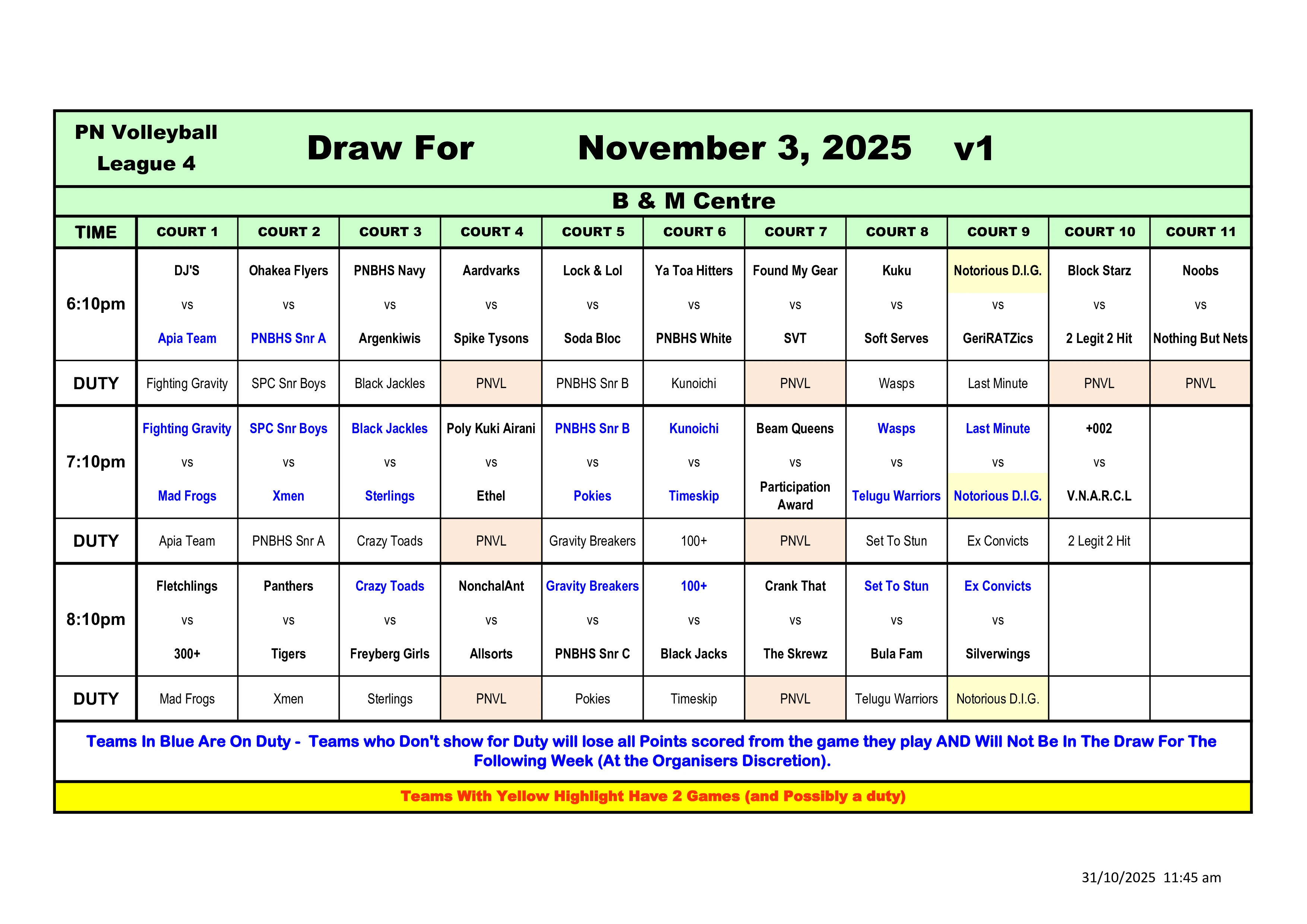 Teams on Duty are required to have 2 referees. Failure to do so will result in loss of referee point.