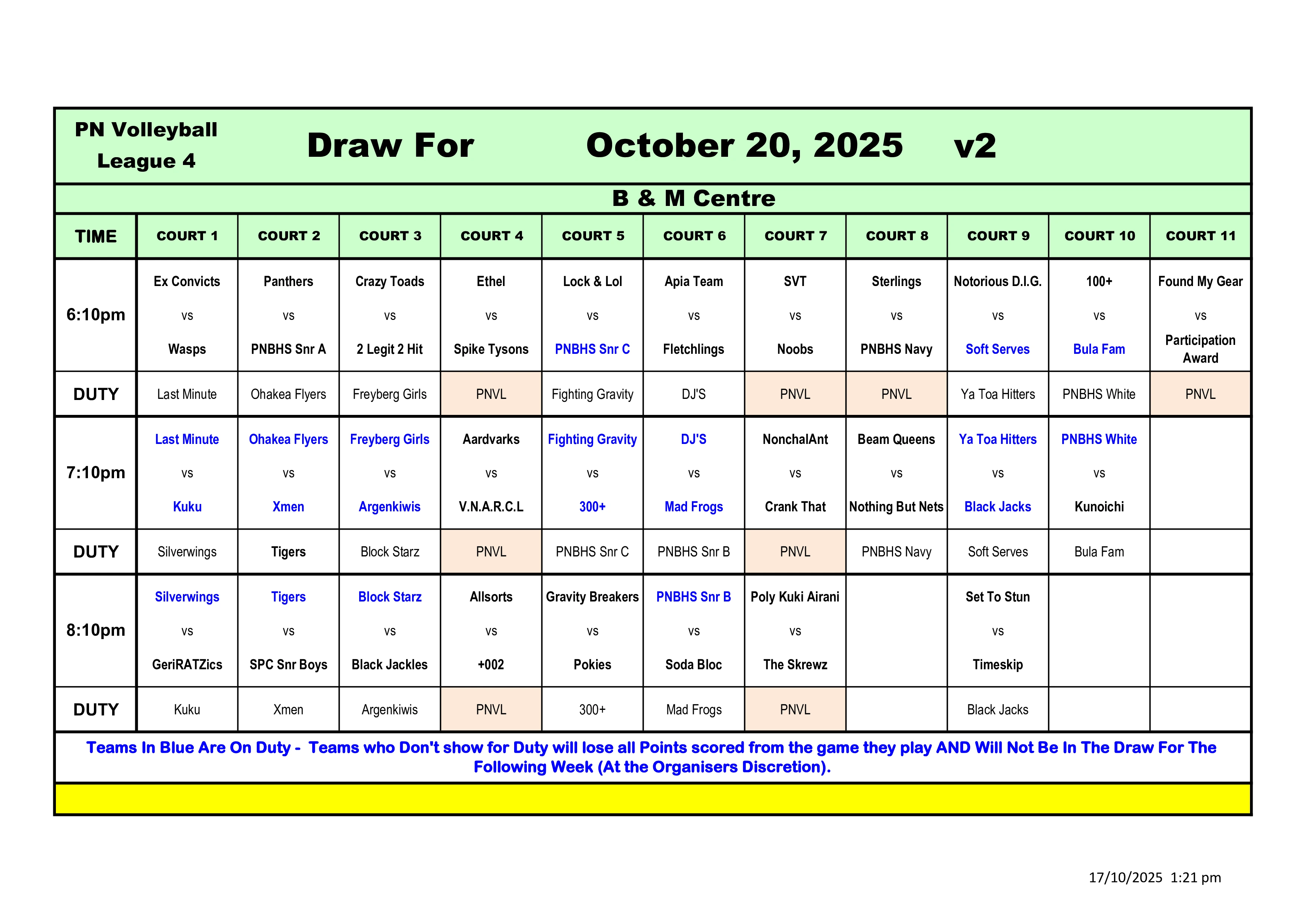 League 4 Starts Monday October 6th (First Monday Of Schools 4th Term)